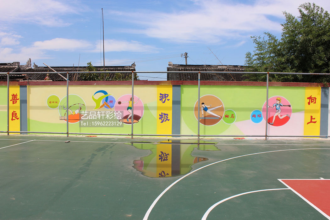围墙彩绘立足办学理念、校风校训核心内核,深度融合新时代校园文明风尚。墙面精心绘制爱国爱校、尊师乐学、勤俭友善、安全守纪、绿色环保等正向主题画面,搭配简约大气的文化标语,图文呼应、相得益彰。整体设计拒绝浮夸猎奇风格,坚守庄重朴素、积极向上的校园基调,色彩沉稳大气,构图规整大方,既贴合校园文化定位,又契合周边整体风貌,兼具观赏性、文化性与公益性,适配长期户外展示。
